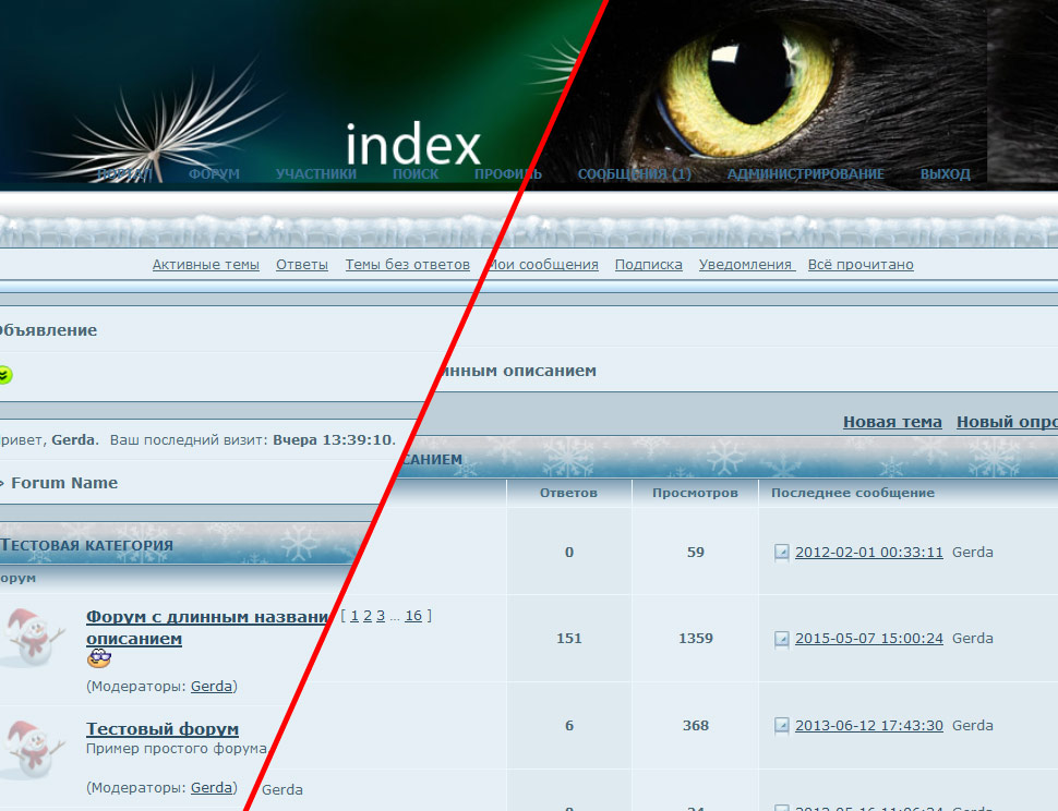 //Если Вам необходимо установить шапку только на темы или только на форумы - не используйте ненужный блок.