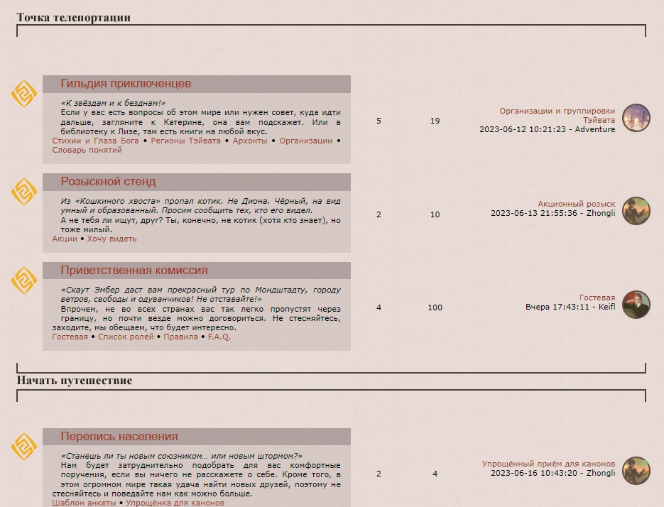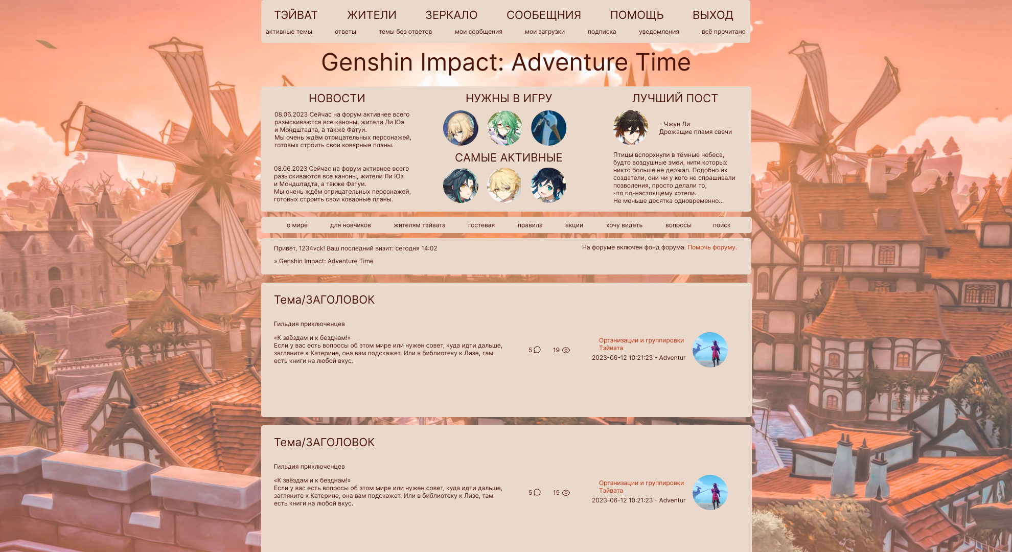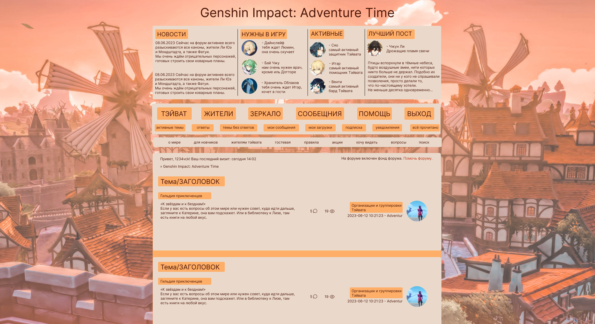 Хотелось бы категории форума изображениями, а ещё изображение в форме ответа и на фоне цитаты. Под изображением не обязательно именно картинка, можно любой красивый узор. Мне приходят в голову карточки персонажей или достижений (там дают красивый фон для профиля в игре, их можно нагуглить, я помогу подобрать, когда с основным видом дизайна определимся).