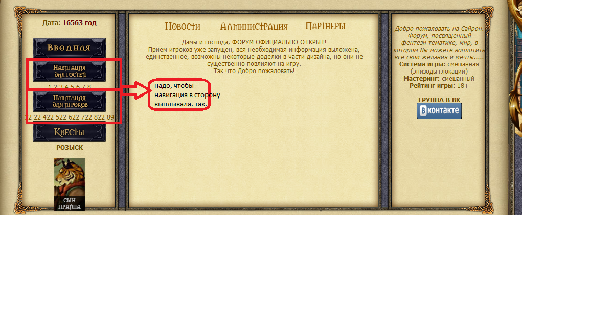 1. Кнопки навигации гостей и игроков сделать с выплыванием в бок