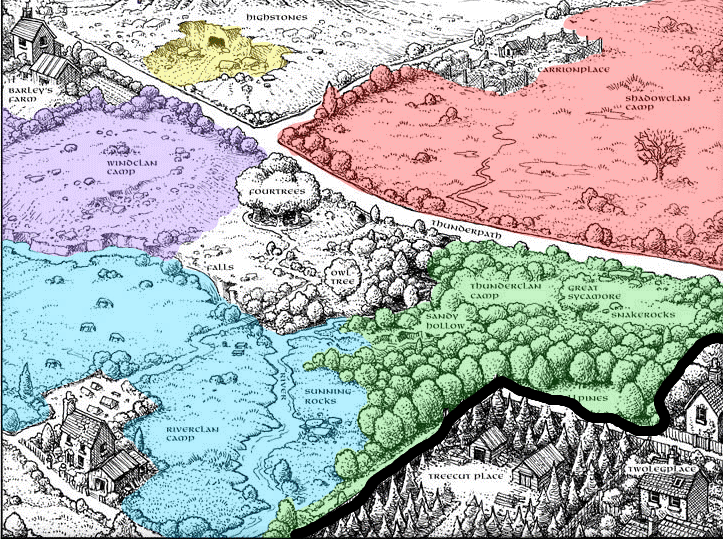 Если нажмешь на любую область ФИОЛЕТОВОГО цвета - http://warriorscats2.rolka.su/viewforum.php?id=14