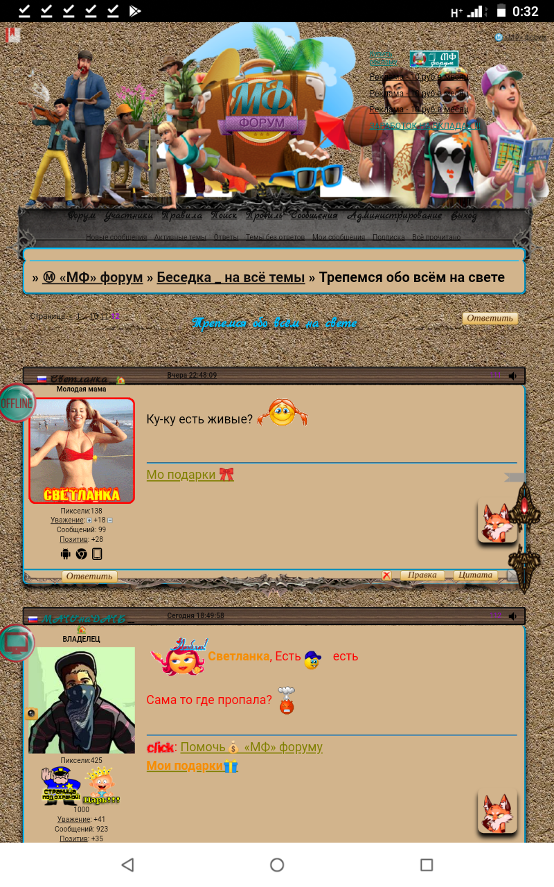- слайдер модеров и админов