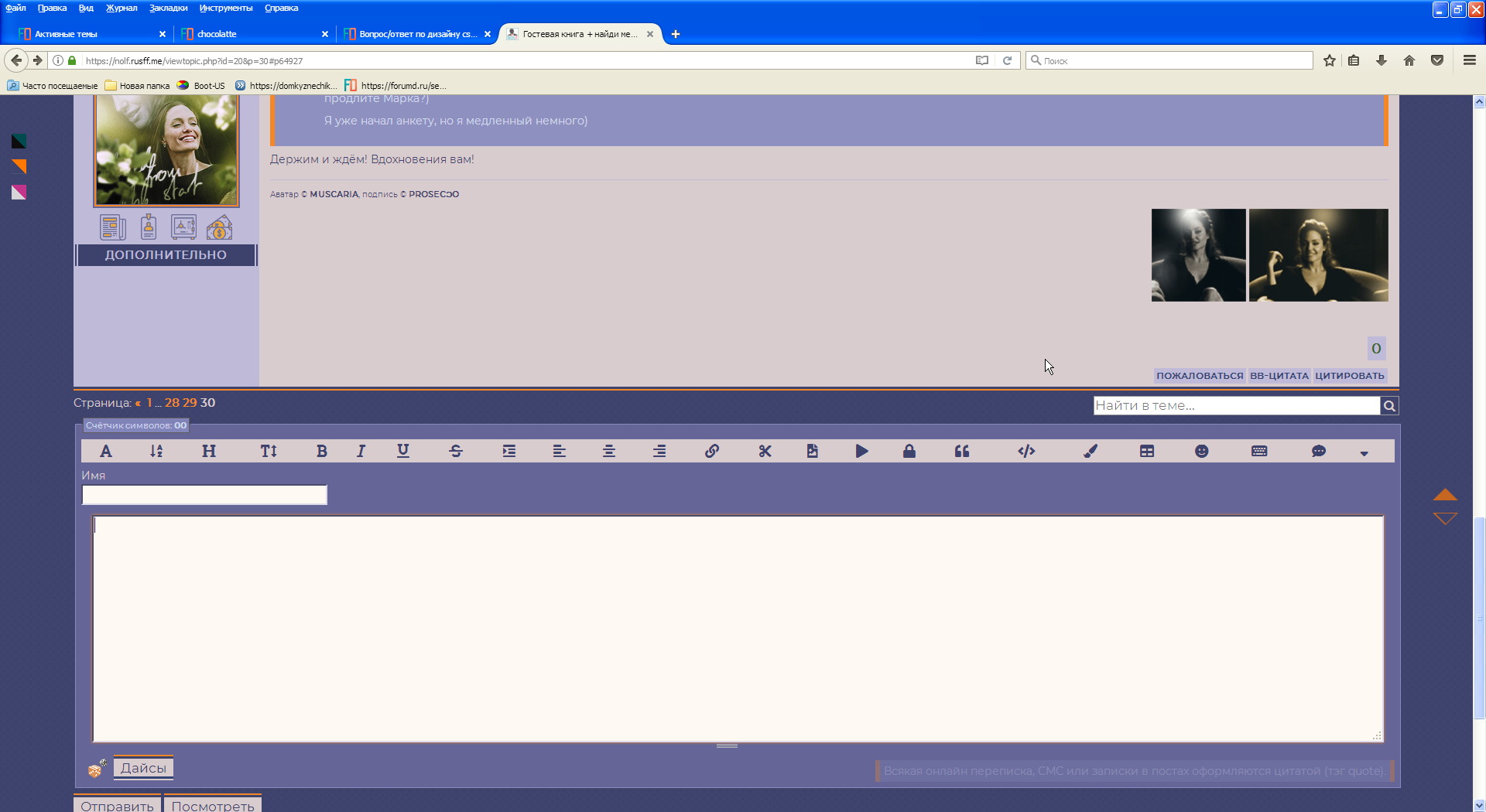 </noscript> <!-- Мгновенные уведомления © Alex_63, 2024 --> <link rel="stylesheet" type="text/css" href="//forumstatic.ru/f/ru/bestbb/notifications.css" /> <script type="text/javascript" src="//forumstatic.ru/f/ru/bestbb/notifications.js"></script> <!-- посты из важных тем --> <script type="text/javascript"> notifications.load('common', {}); notifications.load('important', {topics: [2921,6505,8996]}); </script> <script>notifications.load('subscriptions');</script><!-- подписки на форум/тему --> <script>notifications.load('fields', {fields: [1, 2], emptyNotify: true})</script><!-- изменения в полях профиля --> <script>notifications.load('mentions');</script><!-- упоминания --> <script>notifications.load('reports');</script><!-- Жалобы --> <script>notifications.load('new_user')</script><!-- регистрация юзеров --> <script>notifications.addons.tgbot.noInvite = true;</script> <!-- убрать подсказку про телегу --> <script>notifications.load('premod')</script><!-- премодерация --> <!-- Правка для уведомлений по клику на ник, в связи с измененной версткой профиля --> <script type="text/javascript"> $('#pun-viewtopic').on('click', '.fd-name a', function(e) {$(this).parents('.post').find('.pa-author a').trigger('click');}); </script> <!-- Голосовые сообщения © Alex_63, 2024 --> <link rel="stylesheet" type="text/css" href="//forumstatic.ru/f/ru/bestbb/voice.css" /> <script type="text/javascript" src="https://forumstatic.ru/f/ru/bestbb/voice.js"></script> <script>voice.startOnOpen = false</script> <style> .voice-modal .container { overflow: hidden; } </style> <!-- иконки font awesome --> <script src="https://kit.fontawesome.com/f50f12bcbf.js" crossorigin="anonymous"></script> <!-- free --> <script src="https://kit.fontawesome.com/c06ba4bb64.js" crossorigin="anonymous"></script> <!-- pro --> <!-- Скрипт для создания анкет © Alex_63 --> <style> .postlink a[href*="questionary"] {background: #f98561; border-bottom: 6px solid #e63737;} .postlink a[href*="questionary"]:hover {background: #e63737;} </style> <script type="text/javascript"> var Questnr = {}; Questnr.groups = [1,2,6,12,16]; //Группы, которым разрешено создавать шаблоны для анкет Questnr.forums = [4,5,6,19,2,22,108,121,1,144,90,179,151,133,184,123]; //Форумы с допуском к анкетированию Questnr.title = 'Заказ от '; //Начало заголовка темы с анкетой (по умолчанию) Questnr.noedit = 0; //Запрет редактирования заполненной анкеты пользователем </script> <script type="text/javascript"> ['viewforum','viewtopic','post','edit','searchposts'].indexOf($('.punbb')[0].id.substr(4))!=-1&& $().pun_mainReady(function(){var s='script',l='/files/0007/e3/f7/32678.js'; var f=$('#pun-viewforum').length?$('link[rel="alternate"]'):$('.crumbs a[href*="viewforum"]:last'); f=+f[0].href.match(/id=(\d+)$/)[1];Questnr.forums.indexOf(f)!=-1&&document.write('<'+s+' src="'+l+'"></'+s+'>')}); </script> <script> //работающий у всех кроме динозавров вариант //Questnr.allowReply = [+$('link[rel="alternate"]')[0].href.match(/id=(\d+)$/)?.[1]]; //текущая тема var curReplyMatch = $('link[rel="alternate"]')[0].href.match(/id=(\d+)$/); //если нашел текущую тему - массив, иначе 0 if (curReplyMatch) { Questnr.allowReply = [+curReplyMatch[1]]; } </script> <script> // Проверенные спецы var verifiedData = [ { id: '2', color: 'orange', fld: '<span class="material-symbols-outlined red rus" title="Ведущий специалист: <b>UI/UX дизайн</b>, <b>CSS/Верстка</b>, Javascript">verified</span><span class="material-symbols-outlined orange eng" title="Qualified developer">verified</span>' }, { id: '7032', color: 'orange', fld: '<span class="material-symbols-outlined red rus" title="Ведущий специалист: <b>PHP/Javascript</b>">verified</span><span class="material-symbols-outlined orange eng" title="Qualified developer">verified</span>' }, { id: '7907', color: 'orange', fld: '<span class="material-symbols-outlined red rus" title="Ведущий специалист: <b>PHP/Javascript</b>">verified</span><span class="material-symbols-outlined orange eng" title="Qualified developer">verified</span>' }, { id: '7006', color: 'orange', fld: '<span class="material-symbols-outlined red rus" title="Ведущий специалист: <b>Вебдизайн</b>, <b>Графический дизайн</b>">verified</span><span class="material-symbols-outlined orange eng" title="Qualified developer">verified</span>' }, { id: '7181', color: 'orange', fld: '<span class="material-symbols-outlined red rus" title="Ведущий специалист: <b>DigitalArt</b> - цифровой рисунок, pixelart, анимация">verified</span><span class="material-symbols-outlined orange eng" title="Qualified developer">verified</span>' }, { id: '7130', color: 'orange', fld: '<span class="material-symbols-outlined orange rus" title="Проверенный специалист: <b>CSS/Верстка</b>">verified</span><span class="material-symbols-outlined orange eng" title="Qualified developer">verified</span>' }, { id: '7639', color: 'orange', fld: '<span class="material-symbols-outlined orange rus" title="Проверенный специалист: <b>Вебдизайн</b>">verified</span><span class="material-symbols-outlined orange eng" title="Qualified developer">verified</span>' }, { id: '6797', color: 'orange', fld: '<span class="material-symbols-outlined orange rus" title="Проверенный специалист: <b>Javascript</b>">verified</span>