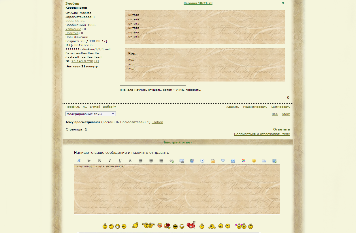 Код:#pun-title table tbody tr .title-logo-tdr {position: absolute; z-index: 1; left: 200px; top: -10px} HTML, BODY { background-color: #ffd98c; background-image: url("https://upforme.ru/uploads/0007/e3/f7/28210-1-f.jpg"); background-attachment: fixed; background-position: top center;} #pun {background-color: #; color: #381138; background-image : url(перед); background-attachment: fixed center; background-position: top center;} #pun-title table {background-image : url("https://upforme.ru/uploads/0007/e3/f7/28211-1-f.jpg"); height : 198px; background-repeat : no-repeat; } #pun-title .title-logo span {display: none;} #pun-title .title-logo {background-image : url(); background-repeat : no-repeat; height : 150px; } .punbb a:link {color: #5a3757;} .punbb a:visited {color: #805798;} .punbb a:hover {color: #985d99;} #pun-navlinks a:link, #pun-navlinks a:visited {color: #8d3e83;} #pun-navlinks a:hover {color: #94007a;} #pun_wrap #pun #pun-index #pun-about.section .container {background-image: url(""); } #pun-navlinks .container { padding-top : 2px; font-weight: bold; text-align: center; height: 1px;} #pun-main .formal textarea { background-color : #9f9070; color : #463b0a; background-image : url(https://upforme.ru/uploads/0007/e3/f7/28214-1-f.png); } #pun-main .quote-box, #pun-main .code-box {color #2a3545; background-color: #deb463; background-image : url(https://upforme.ru/uploads/0007/e3/f7/28214-1-f.png);background-repeat: repeat; background-position: top right;} div.icon { background: url(http://ipicture.ru/uploads/100607/nwSaRVmgCS.png) no-repeat;} tr.inew div.icon { background: url(http://ipicture.ru/uploads/100607/ePYRTEdgA1.gif) no-repeat;} tr.iclosed div.icon { background: url(http://ipicture.ru/uploads/100607/RQRkR4osnA.png) no-repeat;} tr.iredirect div.icon { background: url(http://ipicture.ru/uploads/100607/nwSaRVmgCS.png) no-repeat;} tr.isticky div.icon { background: url(http://ipicture.ru/uploads/100607/RhVNArgVWx.png) no-repeat;} #pun #pun-index #pun-stats h2 { color : #dadbd2; background-color : transparent; background-image : url(https://upforme.ru/uploads/0007/e3/f7/28216-1-f.png); text-align: left; font-weight: bold;height: 2 px; } #pun-main h2 { color : #3681df; background-color : transparent; background-image : url(https://upforme.ru/uploads/0007/e3/f7/28216-1-f.png); text-align: left; font-weight: bold;height: высота px; background-position: bottom center;} #pun-main .post h3 span, #pun-main .post .permalink, #pun-main .post h3 strong{ color : #3681df; background-color : transparent; background-image : url(https://upforme.ru/uploads/0007/e3/f7/28216-1-f.png); text-align: left; font-weight: bold;height: высота px;} #pun .punbb #pun-main h1{ color : #3681df; background-color : transparent; background-image : url(https://upforme.ru/uploads/0007/e3/f7/28216-1-f.png); text-align: left; font-weight: bold;height: высота px;} #pun_wrap #pun #pun-index #pun-main .category .container table thead tr .tc1 {background-image: url(""); } #pun_wrap #pun #pun-index #pun-main .category .container table thead tr .tc2 {background-image: url(""); } #pun_wrap #pun #pun-index #pun-main .category .container table thead tr .tc3 {background-image: url(“”); } #pun_wrap #pun #pun-index #pun-main .category .container table .hasicon .alt1 .tc2 {background-image: url(""); } #pun_wrap #pun #pun-index #pun-main .category .container table .hasicon .alt2 .tc2 {background-image: url(""); } #pun_wrap #pun #pun-index #pun-main .category .container table .hasicon .alt1 .tc3 {background-image: url(""); } #pun_wrap #pun #pun-index #pun-main .category .container table .hasicon .alt2 .tc3 {background-image: url(""); } #pun_wrap #pun #pun-index #pun-main .category .container table thead tr .tcr {background-image: url(""); background-repeat: repeat; background-position: left top; } #pun_wrap #pun #pun-index #pun-main .category .container table thead tr .tcl {background-image: url(""); background-position: left center; } #pun_wrap #pun #pun-index #pun-ulinks.section .container {text-align: center;} #pun_wrap #pun #pun-online .punbb #pun-ulinks .section {text-align: center;} #pun_wrap #pun #pun-index. punbb .section {text-align: center; } #pun_wrap #pun #pun-index #pun-main .category .container table thead tr .tc3 {background-image: url(""); }