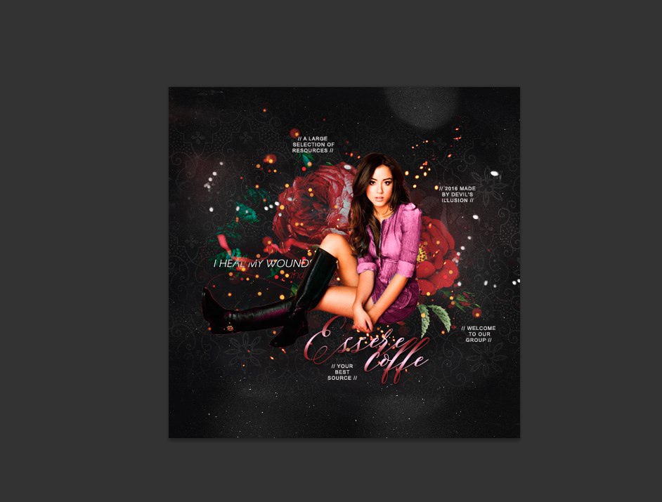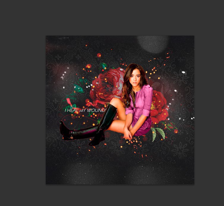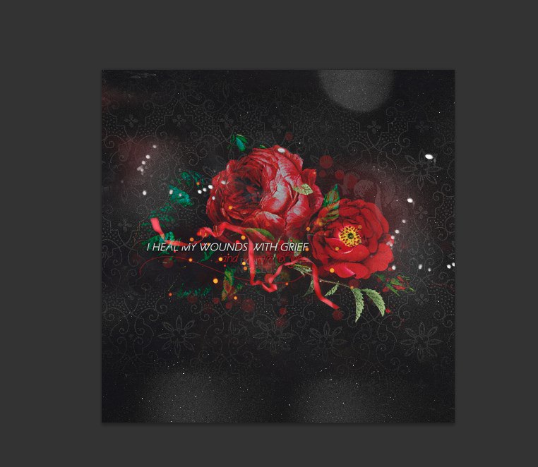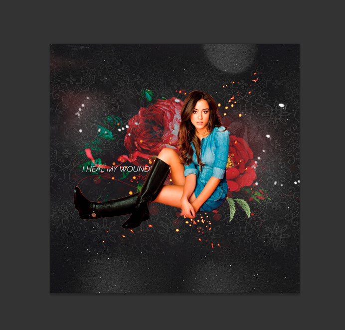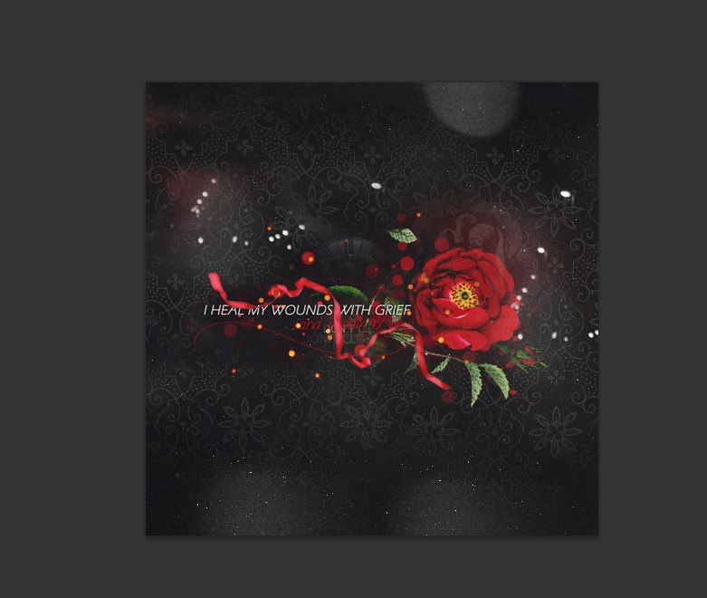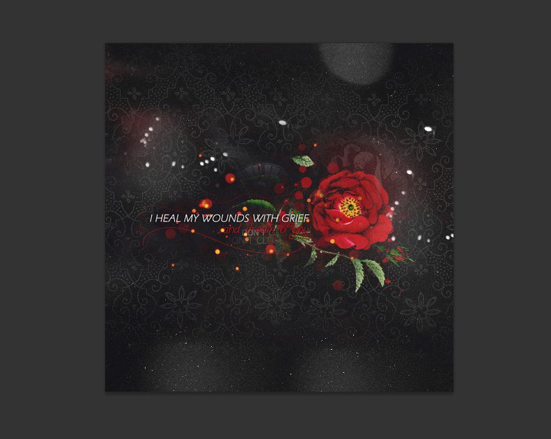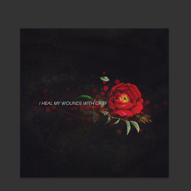 9. Можно добавить текстуру пыли, лучей или косого дождя. Пишем текст. | |