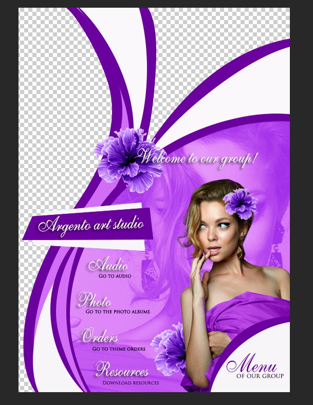 11. Наносим исходник, применяем его к основному полю меню с помощью "обтравочной маски" и ставим режим наложения "Мягкий свет". | |