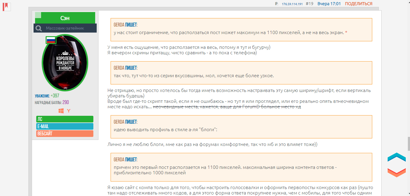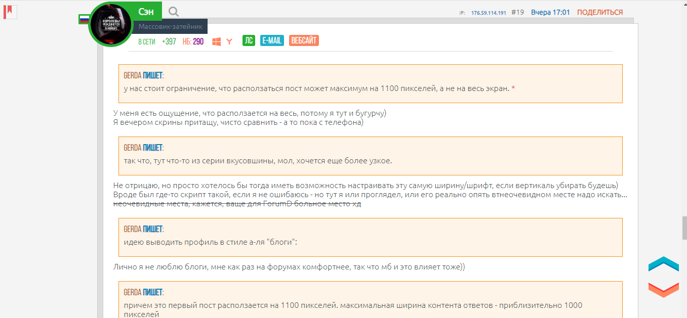 На форуме есть фича вертикального профиля в сообщениях: